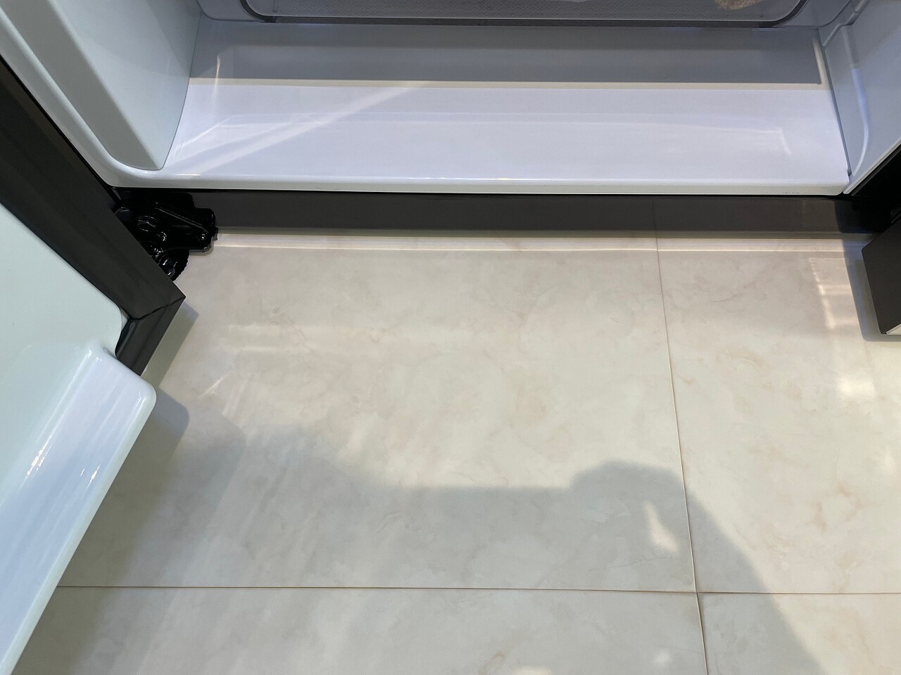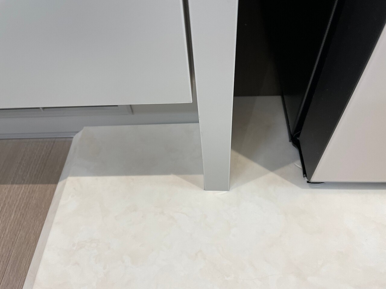 냉장고 아래 매트 자국은 들어갈때 구겨져서 생긴건데 시간이 지나니 깔끔하게 펴졌네요